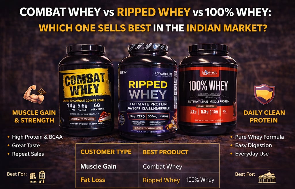 Combat Whey vs Ripped Whey vs 100% Whey: Which One Sells Best in the Indian Market?